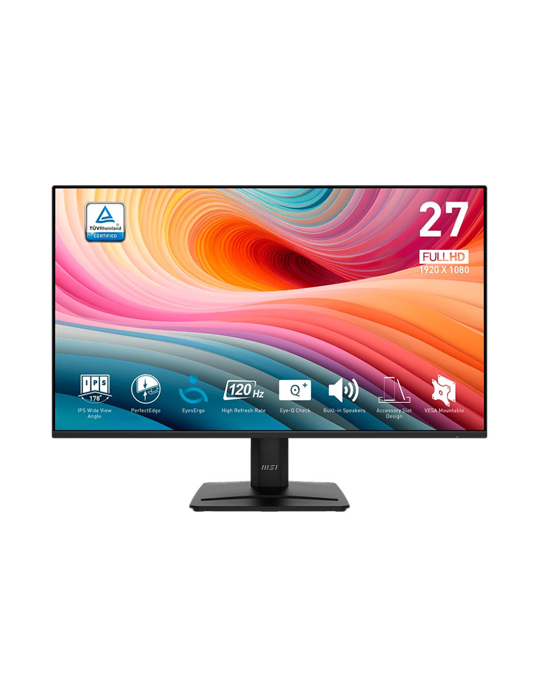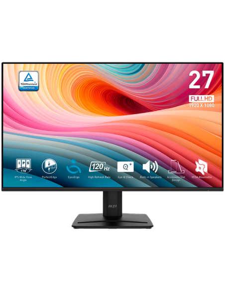 MSI PRO MP275 E2 Professional Business Monitor, 27" 120Hz, FHD (1920x1080) 16:9, IPS Anti-glare, 1ms/4ms, 300nits, 1500:1, 178/178, Adaptive-Sync, HDR Ready, Tilt, Speakers, 1x DP, 1x HDMI, 1x D-Sub, 3Y Warranty_AS