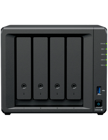Synology DiskStation DS925+ Tower, 4-Bays 3.5'' SATA HDD/SSD, 2 x M.2 2280 NVMe SSD slot, CPU AMD Ryzen V1500B 4-core 2.2 GHz, 4 GB DDR4 ECC SODIMM, 2x RJ-45 2.5 GbE LAN Port; 2x USB 3.2; 1 xUSB Type-C expansion port; 2.26 kg; 3yr warranty_AS