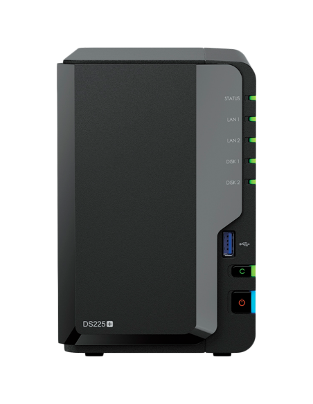 Synology DS225+, Tower, 2-bays 3.5'' SATA HDD/SSD, CPU Inte Celeron J4125 4-core (4-thread) 2.0 GHz, burst up to 2.7 GHz, 2 GB DDR4 non-ECC (expandable up to 6 GB), 1xRJ-45 1GbE LAN, 1xRJ-45 2.5 GbE LAN, 2xUSB 3.2 Gen 1, 1.3 kg, 3yr warranty_AS