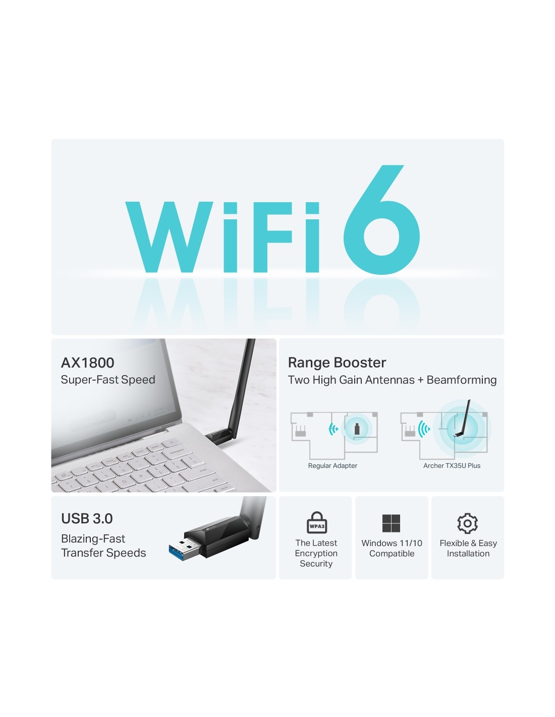 Безжичен USB адаптер с висок коефициент на усилване TP-Link Archer TX35U Plus AX1800 Версия: 1.0 _VI