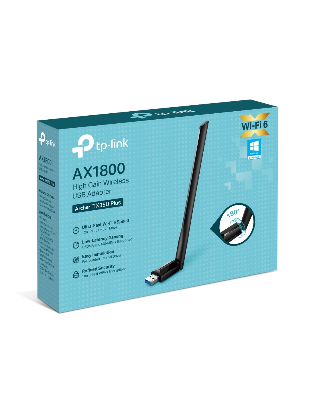 Безжичен USB адаптер с висок коефициент на усилване TP-Link Archer TX35U Plus AX1800 Версия: 1.0