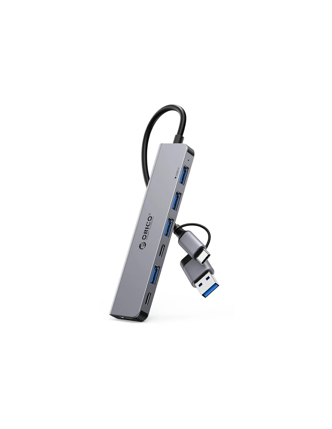 Orico хъб HUB USB-C/USB-A 7 port - USB-C x 2, USB3.0 x 1, USB2.0x 2, Aluminium - YSA7-U3-GY - 12 месеца гаранция