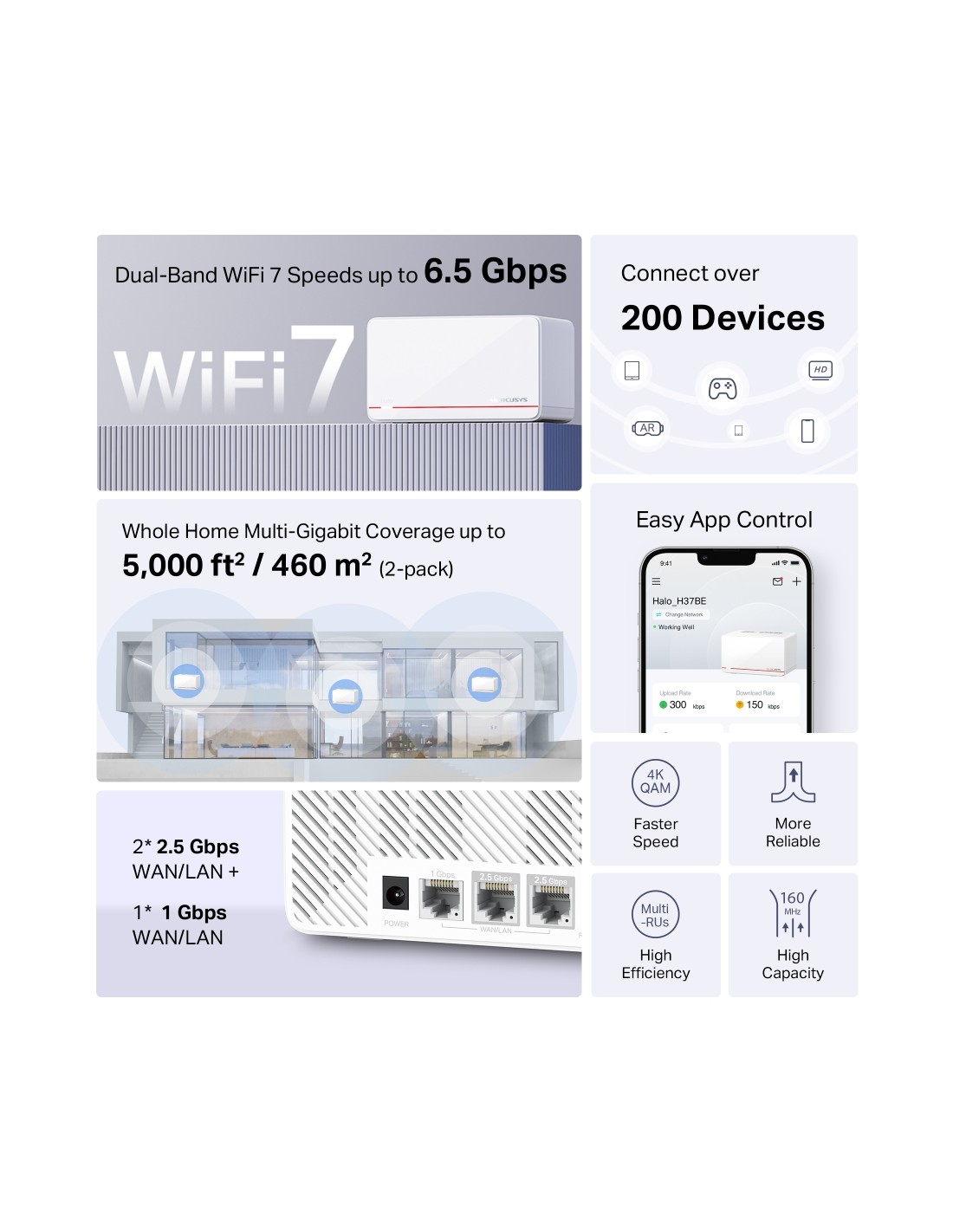 Безжична Wi-fi 7 Mesh система Mercusys Halo H37BE(2-pack) BE6500
