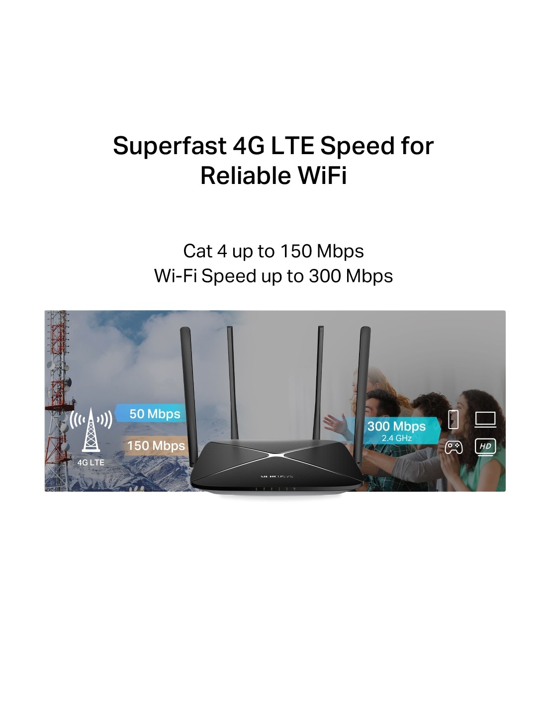 2.4GHz: Up to 300Mbps