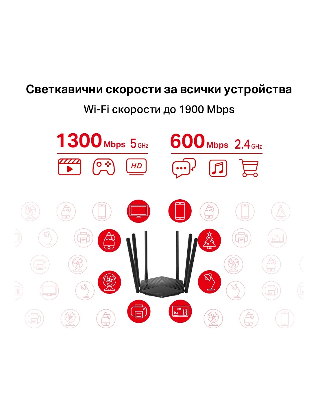 Безжичен 2-лентов Gigabit рутер Mercusys MR50G AC1900