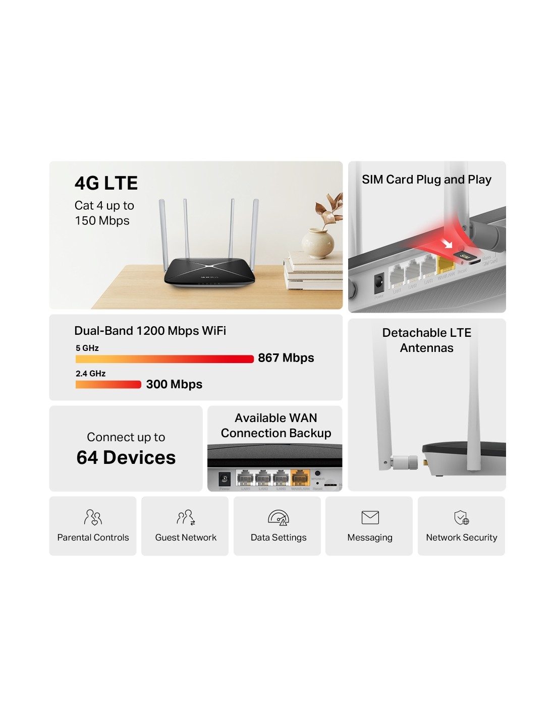 Безжичен рутер Mercusys MB135-4G AC1200 Dual Band 4G LTE  _VI