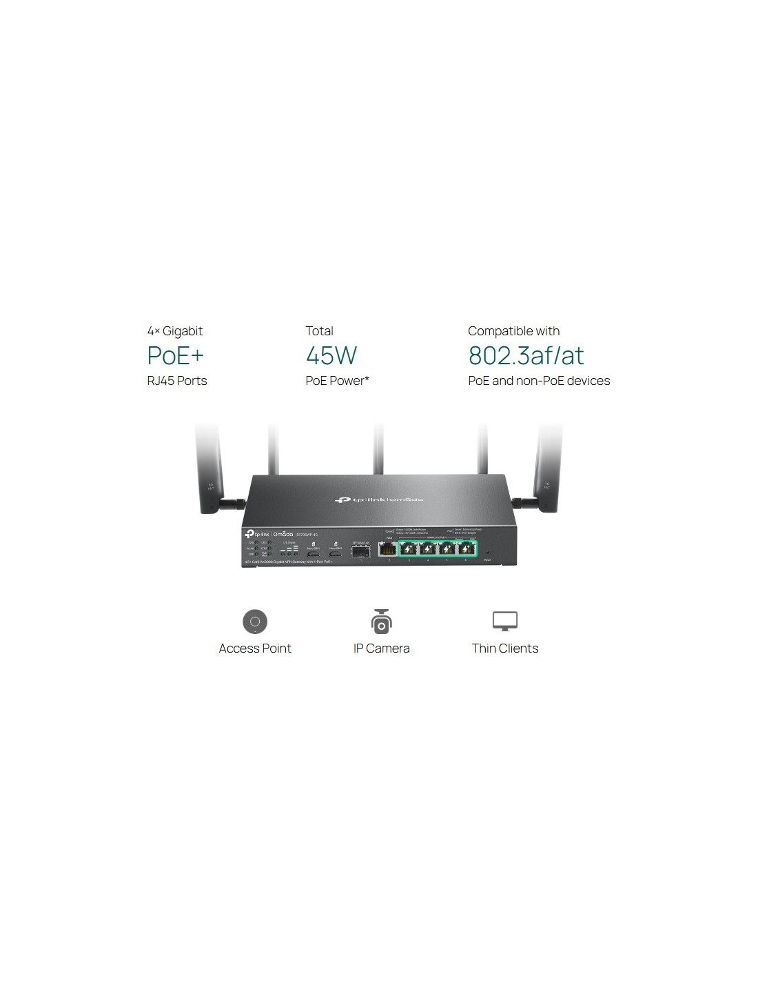 Гигабитен VPN рутер TP-Link Omada 4G+ Cat6 ER706WP-4G AX3000 4-портов PoE+ _VI