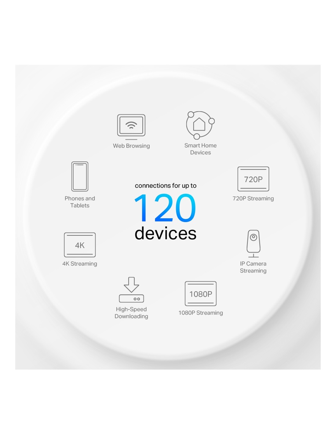 Продуктите Deco имат за цел драстично да подобрят капацитета и ефективността в среда с голям трафик. Без значение колко екрана или устройства са включени наведнъж, всеки може да се наслади на по-ефективна мрежа, която зарежда по-бързо, без да намалява производителността.†