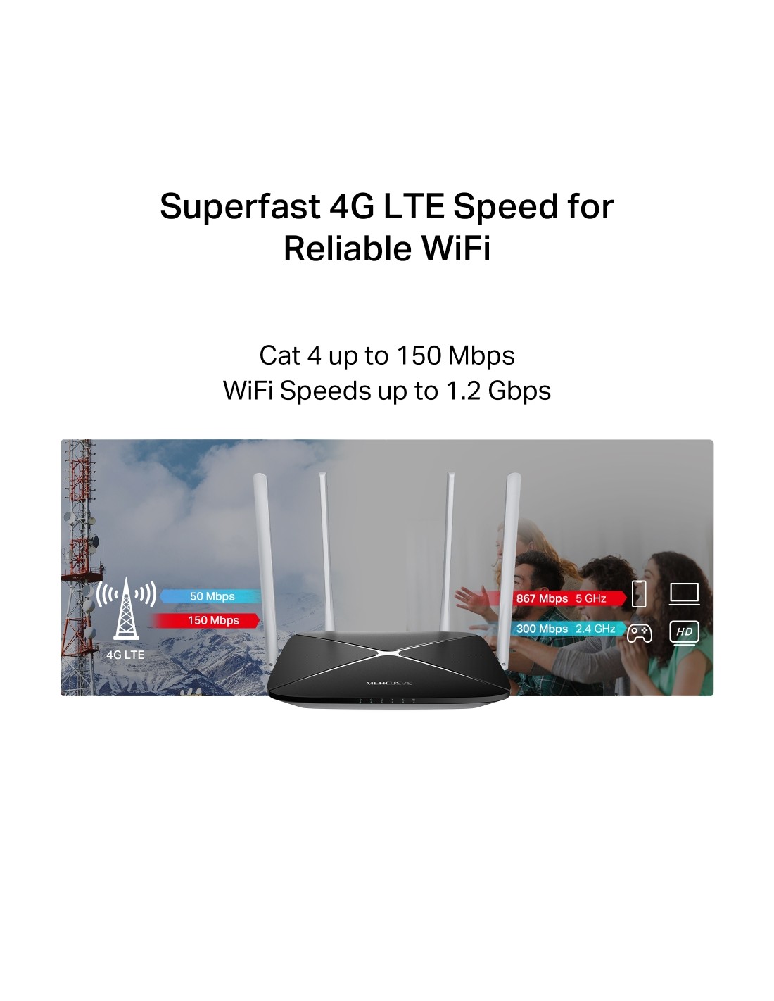Безжичен рутер Mercusys MB135-4G AC1200 Dual Band 4G LTE