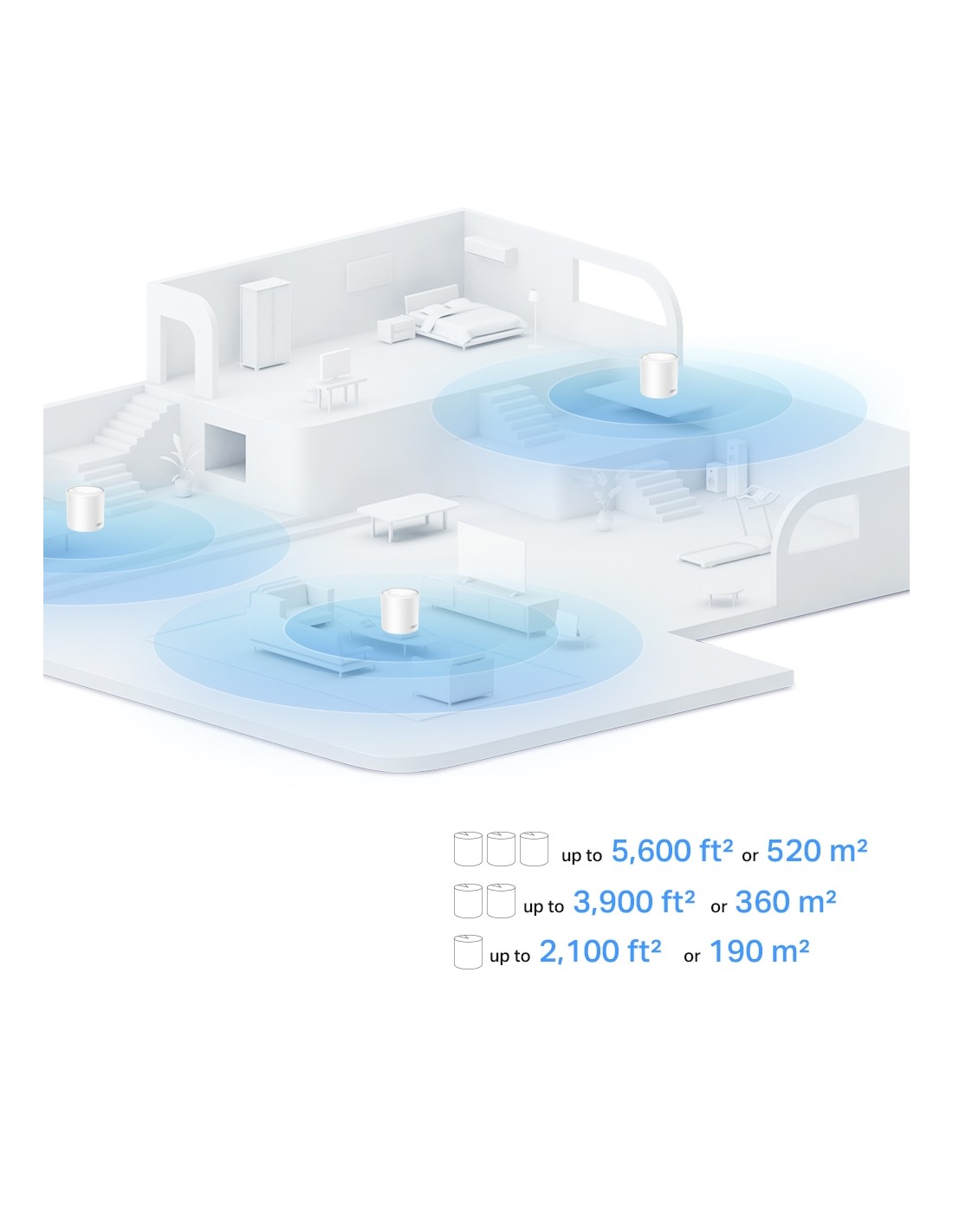 Подсилено безпроблемно покритие: Постигнете безпроблемно покритие на целия дом с по-ясен и по-силен Wi-Fi сигнал за целия дом, генериран от Wi-Fi 6.‡