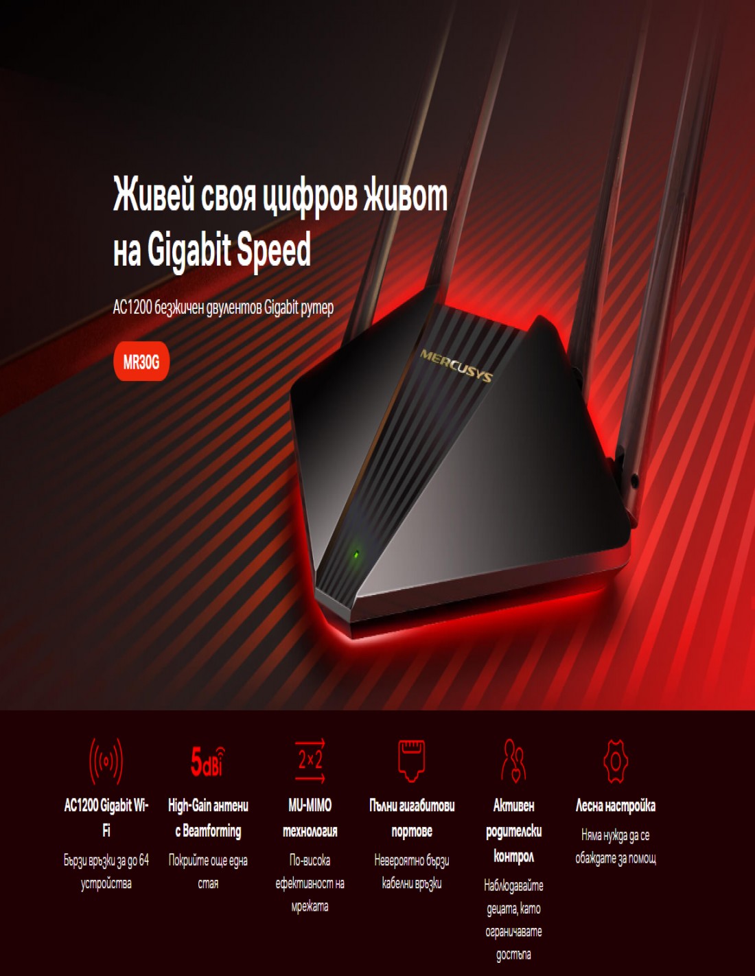 Безжичен 2-лентов Gigabit рутер Mercusys MR30G AC1200
