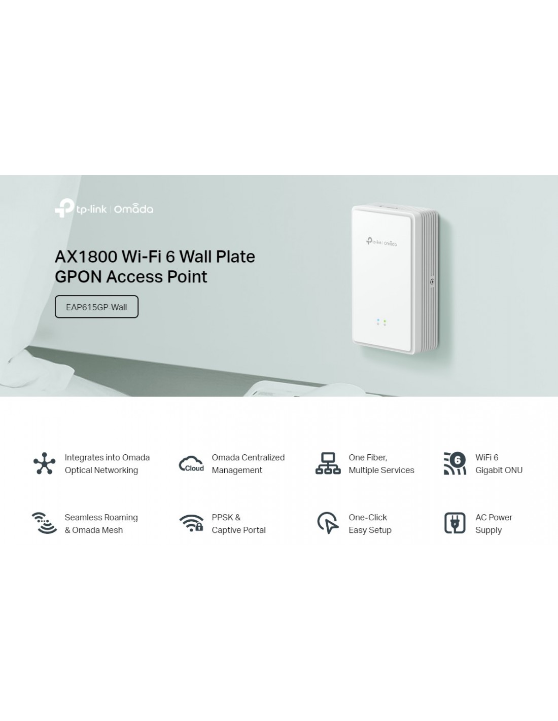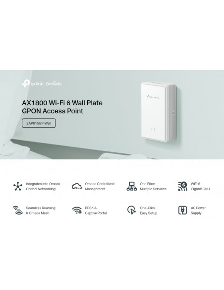 Безжична точка за достъп за стенен монтаж TP-Link Omada EAP615GP-Wall GPON  WiFi 6 AX1800 _VI