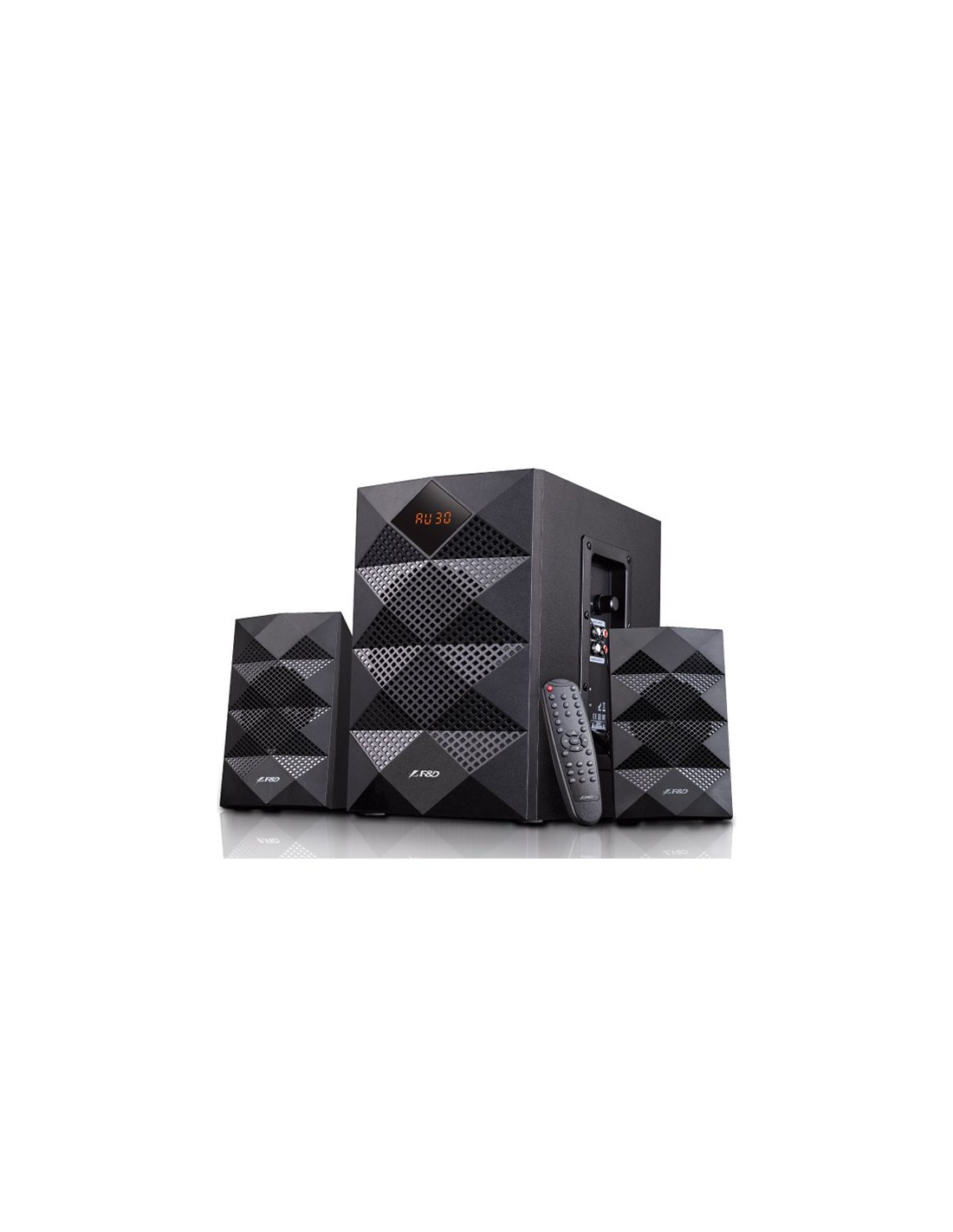 F&D A180X 2.1 Multimedia Speakers, 42W RMS (14Wx2+14W), 2x3'' Satellites + 5.25'' Subwoofer, BT 5.0/AUX/USB/FM/LED Display/Remote Control/Wooden/Black_AS
