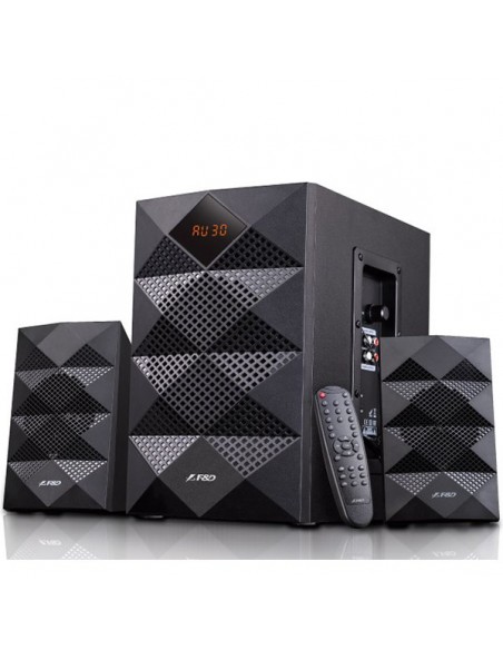 F&D A180X 2.1 Multimedia Speakers, 42W RMS (14Wx2+14W), 2x3'' Satellites + 5.25'' Subwoofer, BT 5.0/AUX/USB/FM/LED Display/Remote Control/Wooden/Black_AS