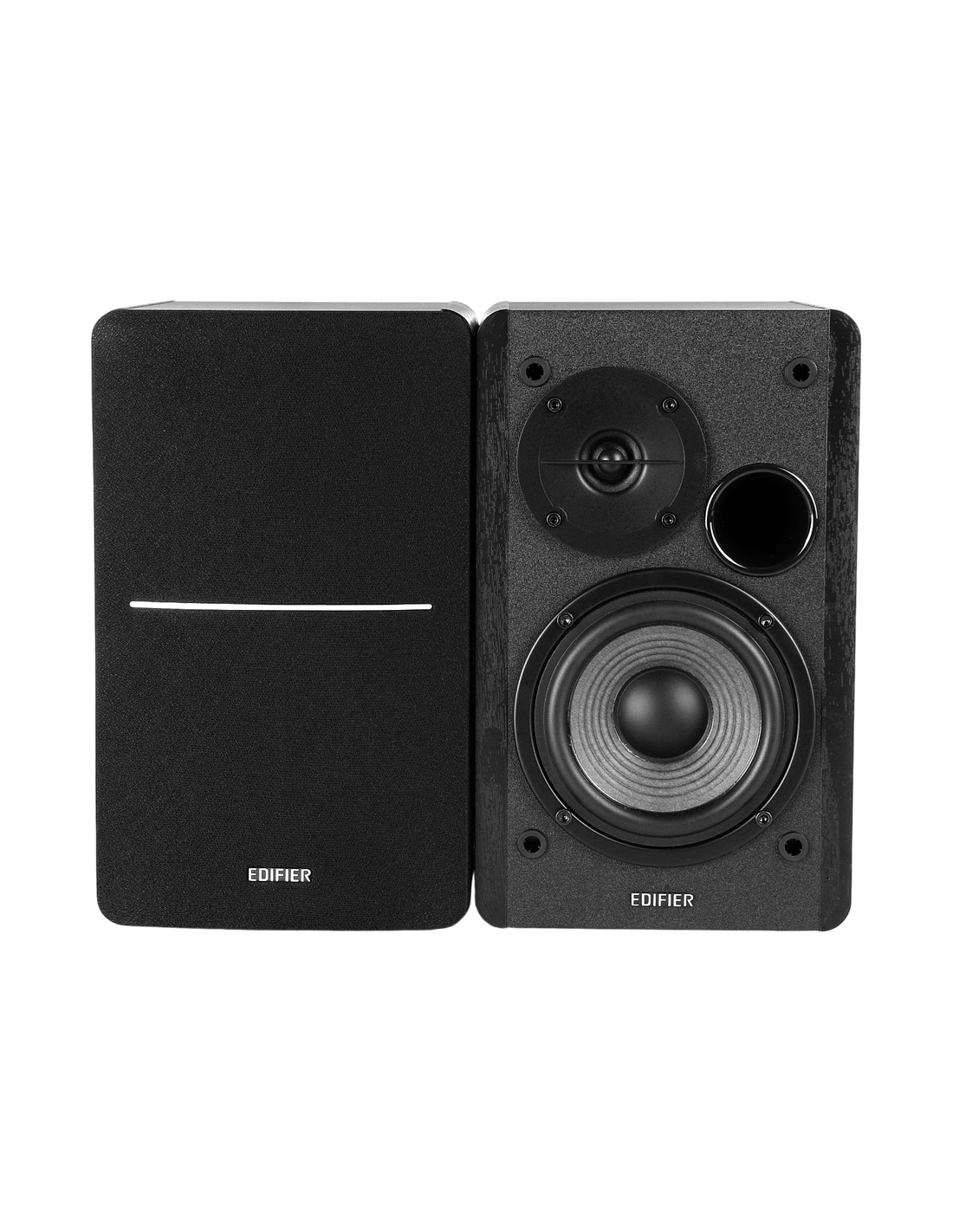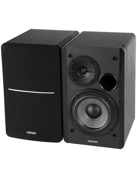 Edifier R1280DB 2.0 Bookshelf Speakers, BT V5.1, Optical, Coaxial, RCA, 0.5-inch Tweeters, 4-inch Drivers, 42W (RMS), Control Knobs and Remote Control, Black_AS