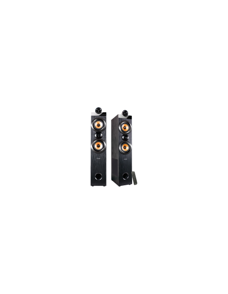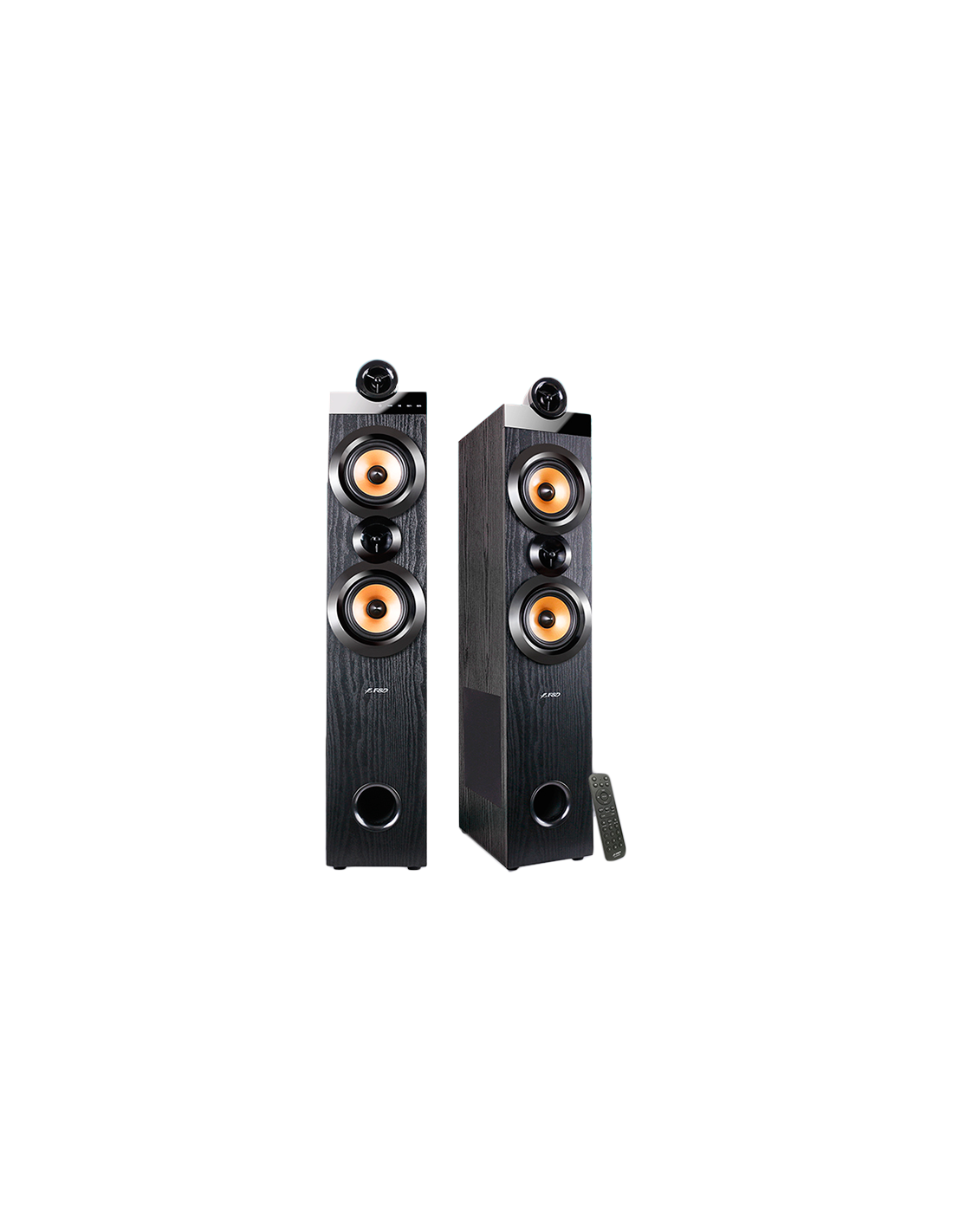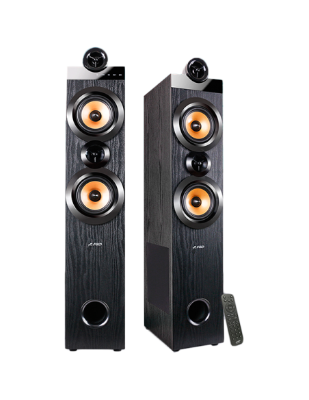 F&D T-70X 2.0 Floorstanding Speakers, 160W RMS (80Wx2), 1'' Tweeter + 5.25'' Speaker + 8'' Subwoofer for each channel, BT 5.0/HDMI(ARC)/Optical/Coaxial/AUX/USB/FM/Karaoke function/ LED Display/Remote control/Microphone included/Wooden/Black_AS