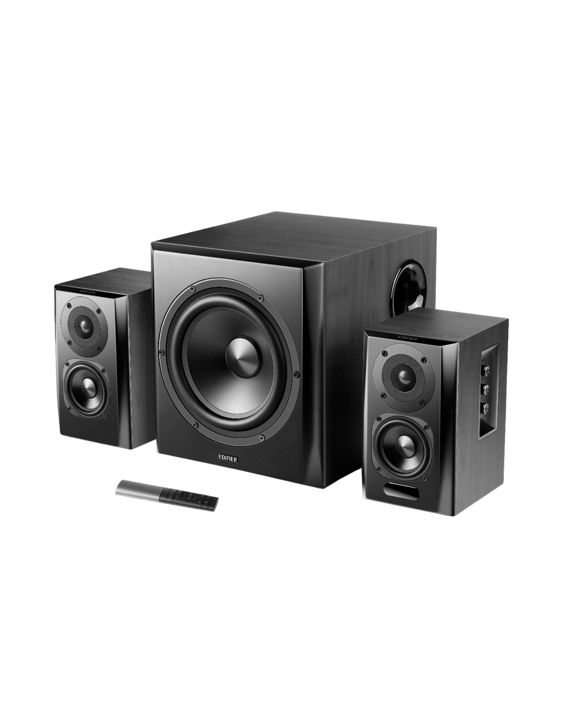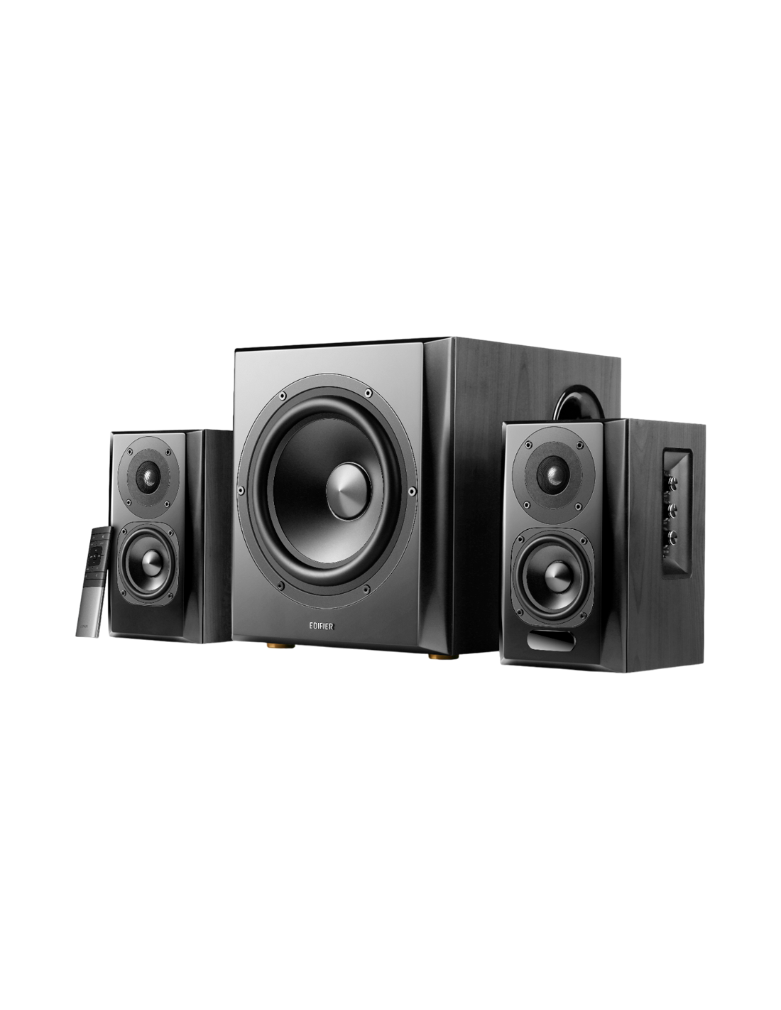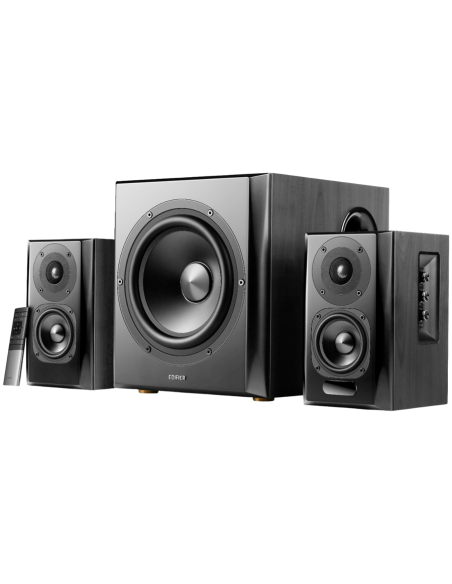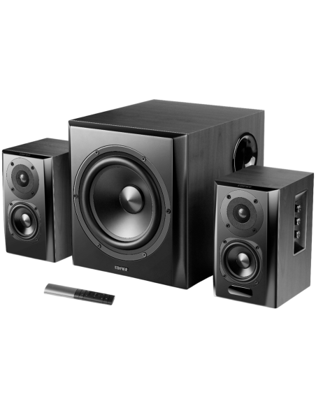 Edifier S351DB 2.1 Audio System, BT V5.1, Optical, Coaxial, RCA, 8-inch Subwoofer, 3.5-inch Drivers, 0.75-inch Tweeters, 150W (RMS), Control Knobs and Remote Control, Black_AS
