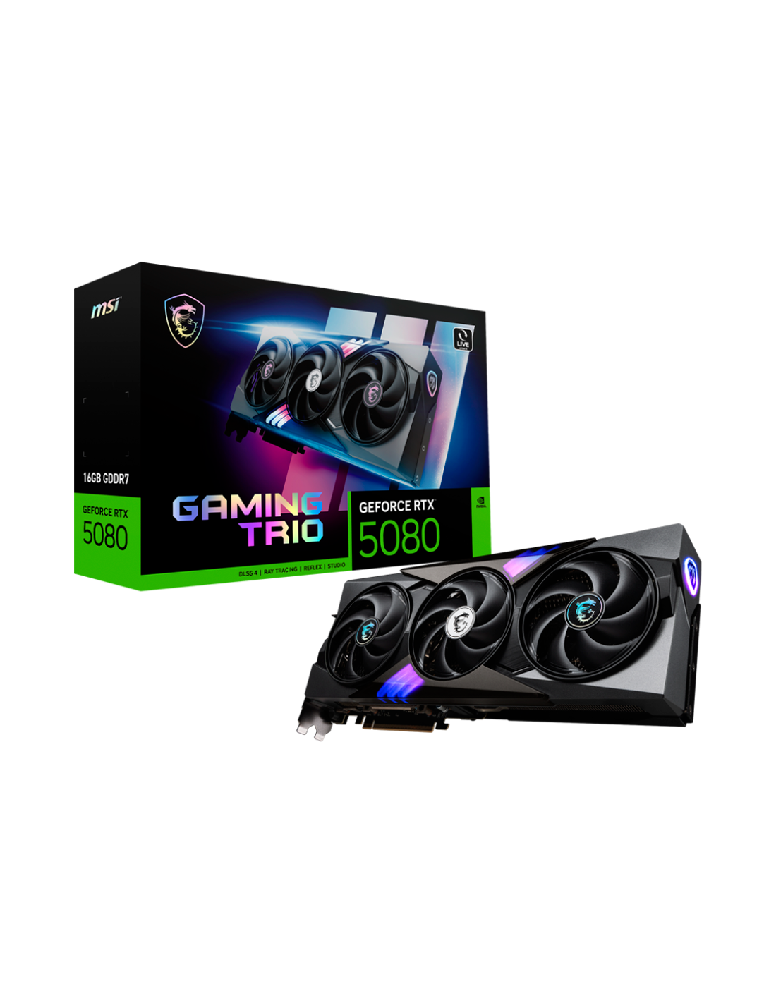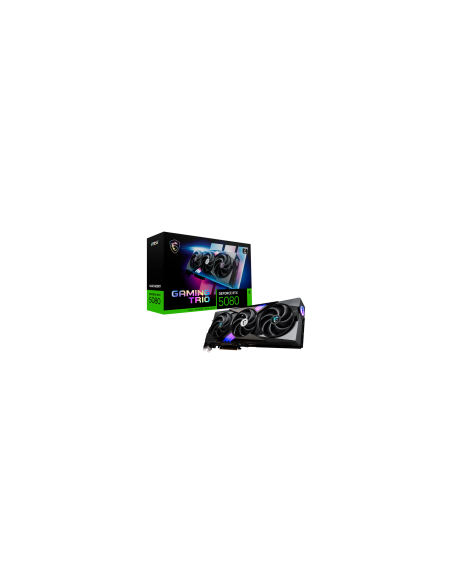 MSI Video Card Nvidia GeForce RTX 5080 16G GAMING TRIO, 16GB GDDR7, 256bit, Effective Memory Clock: 30000MHz, Boost: 2617 MHz, 10752 CUDA Cores, PCIe 5.0, 3x DP 2.1a, HDMI 2.1b, RAY TRACING, Triple Fan, 1x16pin, 850W Recommended PSU, 3Y_AS