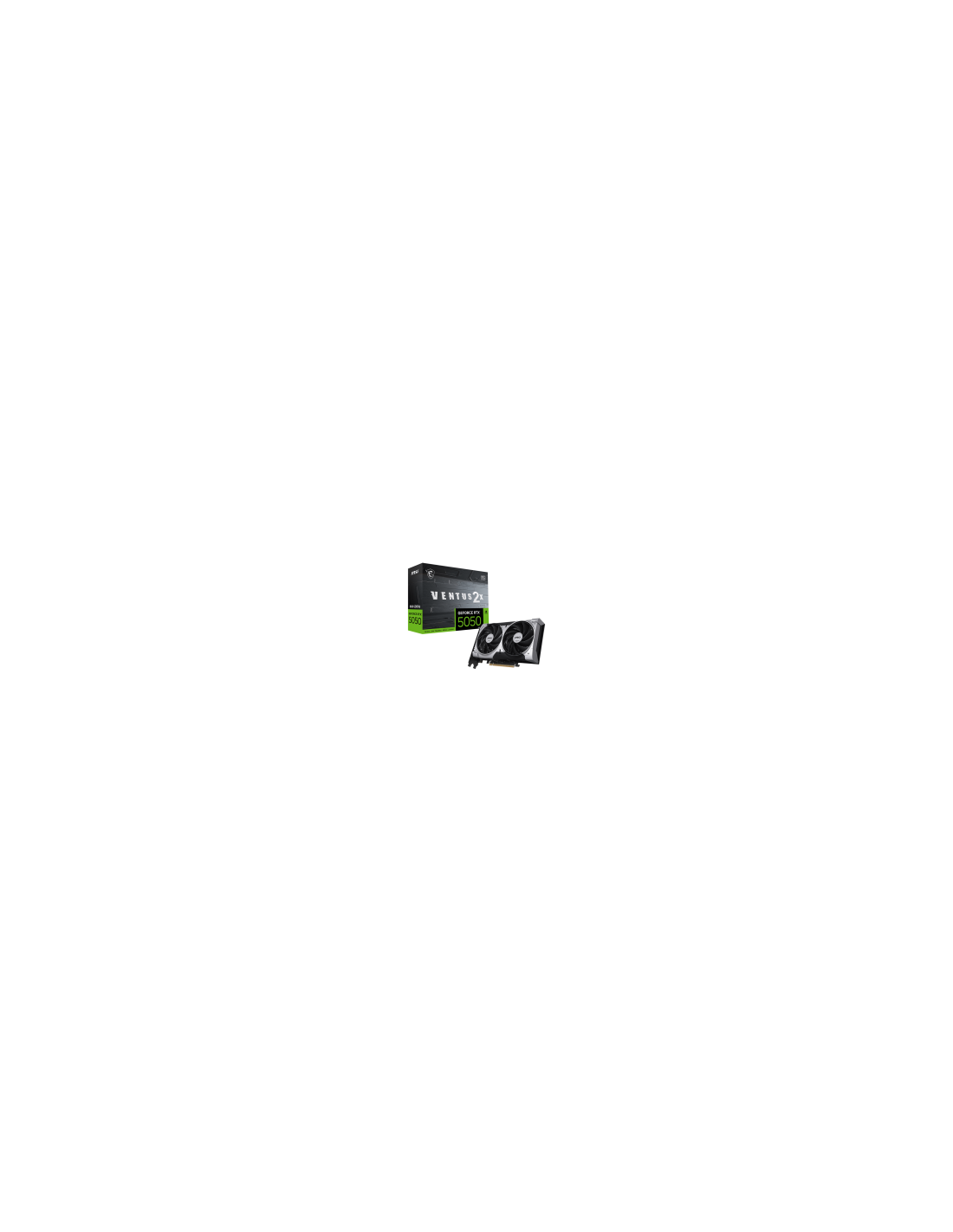 MSI Video Card NVIDIA GeForce RTX 5050 8G VENTUS 2X OC, 8GB GDDR6, 128-bit, 2602 MHz Boost, 2560 CUDA Cores, PCIe 5.0 (x8), 3x DP 2.1b, HDMI 2.1b, RAY TRACING, Dual Fan, 130W TDP, 8-pin PCIe Power, G-SYNC, 2-Slot, 3Y_AS
