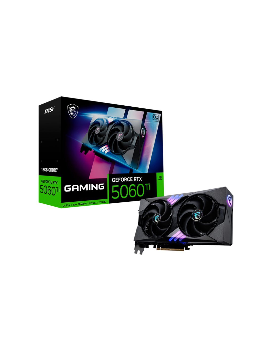 MSI Video Card NVIDIA GeForce RTX 5060 Ti 16G GAMING OC, 16GB GDDR7, 128-bit, 2662 MHz Boost, 4608 CUDA Cores, PCIe 5.0 (x8), 3x DP 2.1b, HDMI 2.1b, RAY TRACING, Dual Fan, 180W TDP, 16-pin PCIe 5.0 (12V-2x6), RGB Lighting, G-SYNC, 2.5-Slot, 3Y_AS