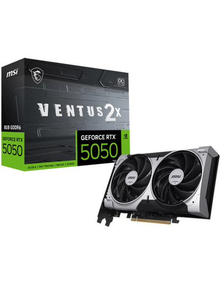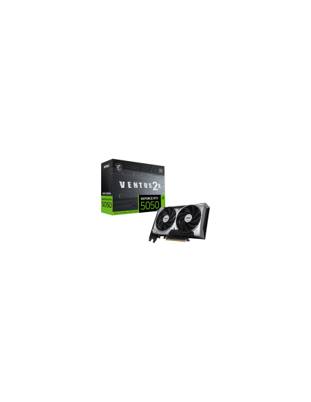 MSI Video Card NVIDIA GeForce RTX 5050 8G VENTUS 2X OC, 8GB GDDR6, 128-bit, 2602 MHz Boost, 2560 CUDA Cores, PCIe 5.0 (x8), 3x DP 2.1b, HDMI 2.1b, RAY TRACING, Dual Fan, 130W TDP, 8-pin PCIe Power, G-SYNC, 2-Slot, 3Y_AS