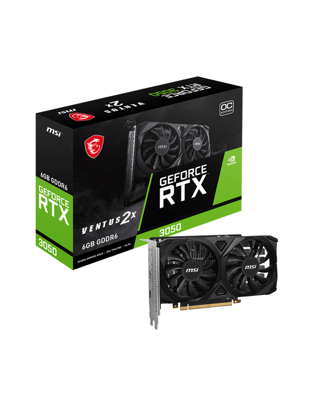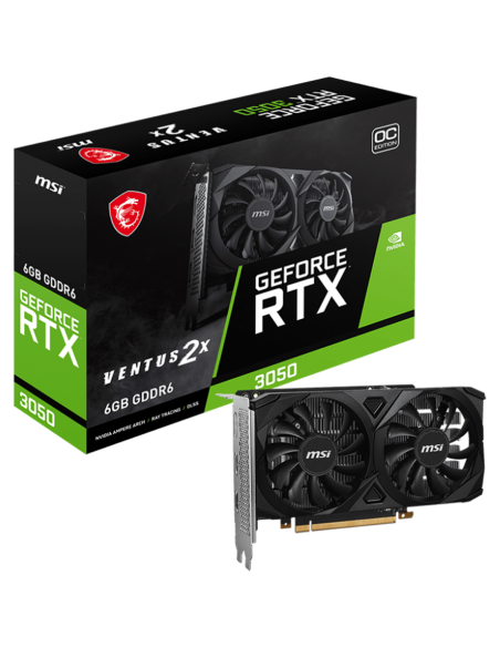 MSI Video Card Nvidia GeForce RTX 3050 VENTUS 2X E 6G OC, 6GB GDDR6, 96bit, Boost: 1492 MHz, 2304 CUDA Cores, PCIe 4.0, 1x DP 1.4a, 2xHDMI 2.1a, RAY TRACING, Dual Fan, 300W, 3Y_AS