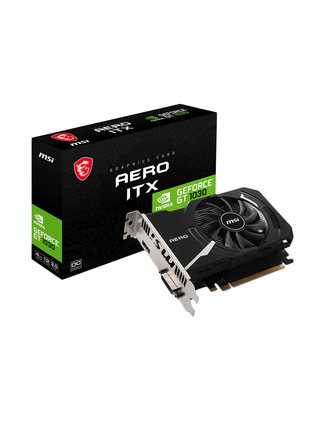 MSI Video Card Nvidia GeForce GT 1030 AERO ITX 4GHD4 OC, 4GB DDR4, 64-bit, 2100MHz Memory Speed, 1430MHz Boost, 384 CUDA Cores, 1x DVI-D, HDMI 2.1, 300W Recommended PSU, 3Y_AS